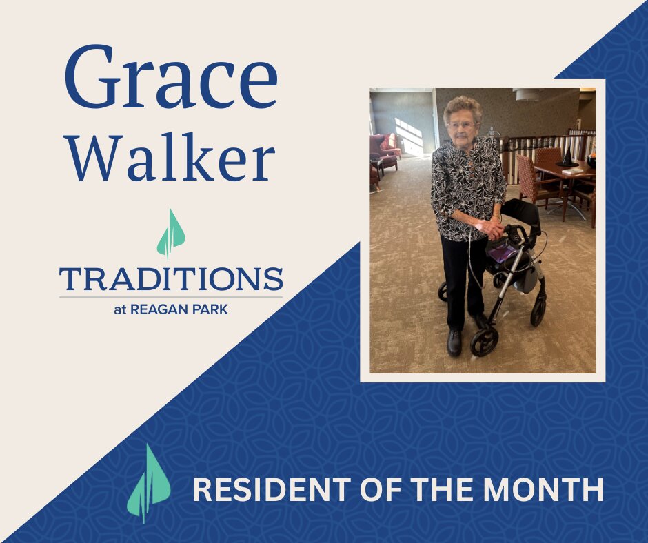 Meet Grace Walker, Traditions’ November Resident of the Month! Grace has called Traditions at Reagan Park in Avon, Indiana, home for nine months.