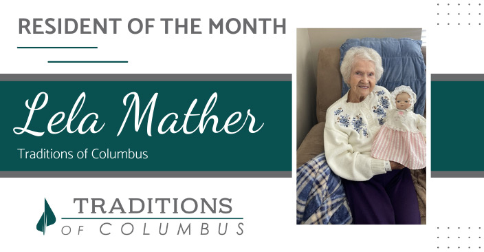 Stacey Gallardo, Columbus’ Executive Director said, “I nominated Lela as Traditions Resident of the Month because she is such a joy to have with us here at Traditions of Columbus. She always greets me with a warm smile and a hug and has such a positive and happy personality.”